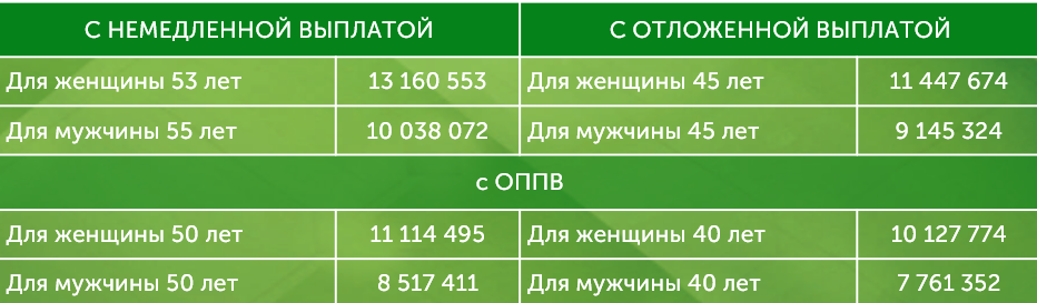 - Возраст для заключения договора отложенного пенсионного аннуитета:
